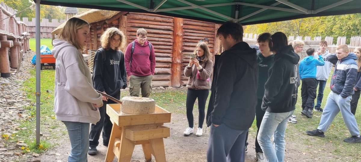Slovanské hradiště, které se rozkládá na ostrohu nad řekou Olší, bylo osídleno už v době pravěku. Období největší slávy zažívalo v době od 9. do poloviny 11. století, kdy jeho obyvatelé ze strategicky skvěle umístěného sídla kontrolovali důležité obchodní stezky z jihu na sever a na východ. Byli výbornými řemeslníky – o tom jsme se přesvědčili v příbytcích tkalce, hrnčíře i výrobce zbraní – a své výrobky čile směňovali s putujícími obchodníky. Zjistili jsme, že jejich život zcela jistě nebyl jednoduchý. A to jsme si vyzkoušeli jen zlomek z toho, co obnášel jejich život. Někteří z nás otestovali, jak se mlelo obilí mezi dvěma kameny. Namlít kilo mouky se rovnalo přibližně půl hodině usilovné práce. Odvážní muži naší výpravy otestovali slovanské zbraně, další účastníci si vyzkoušeli, jak se psalo na voskové tabulky, a to i hlaholicí.