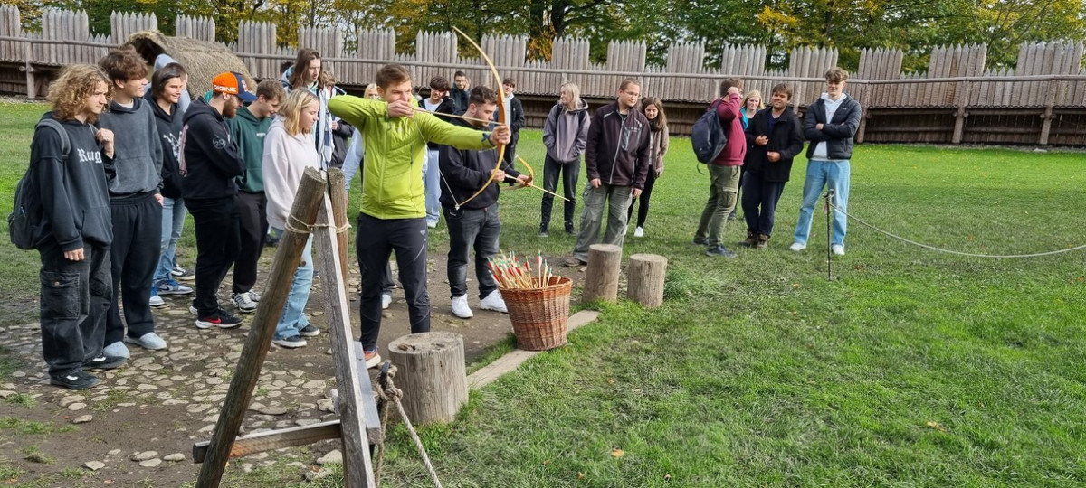 Průzkum sídliště Slovanů jsme ukončili nácvikem střelby šípy na slaměné terče. Byli jsme překvapeni, že zvládnout luk není vůbec jednoduché. Výsledek našeho bádání v terénu byl jednoznačný – naši předkové byli borci, že v takových podmínkách dokázali všechno, co potřebovali k životu, vlastnoručně vyrobit, vypěstovat a ještě zajistit obranu svých příbytků.